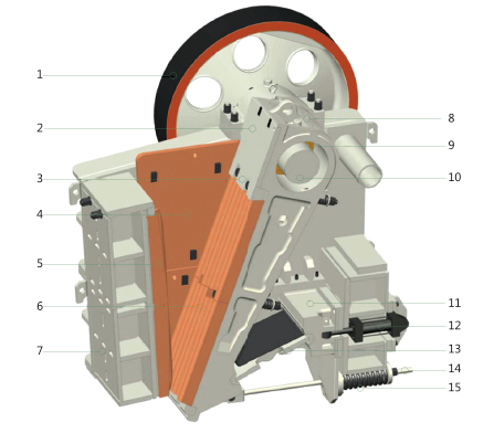 1 飛輪/皮帶輪 2 動(dòng)顎護(hù)板