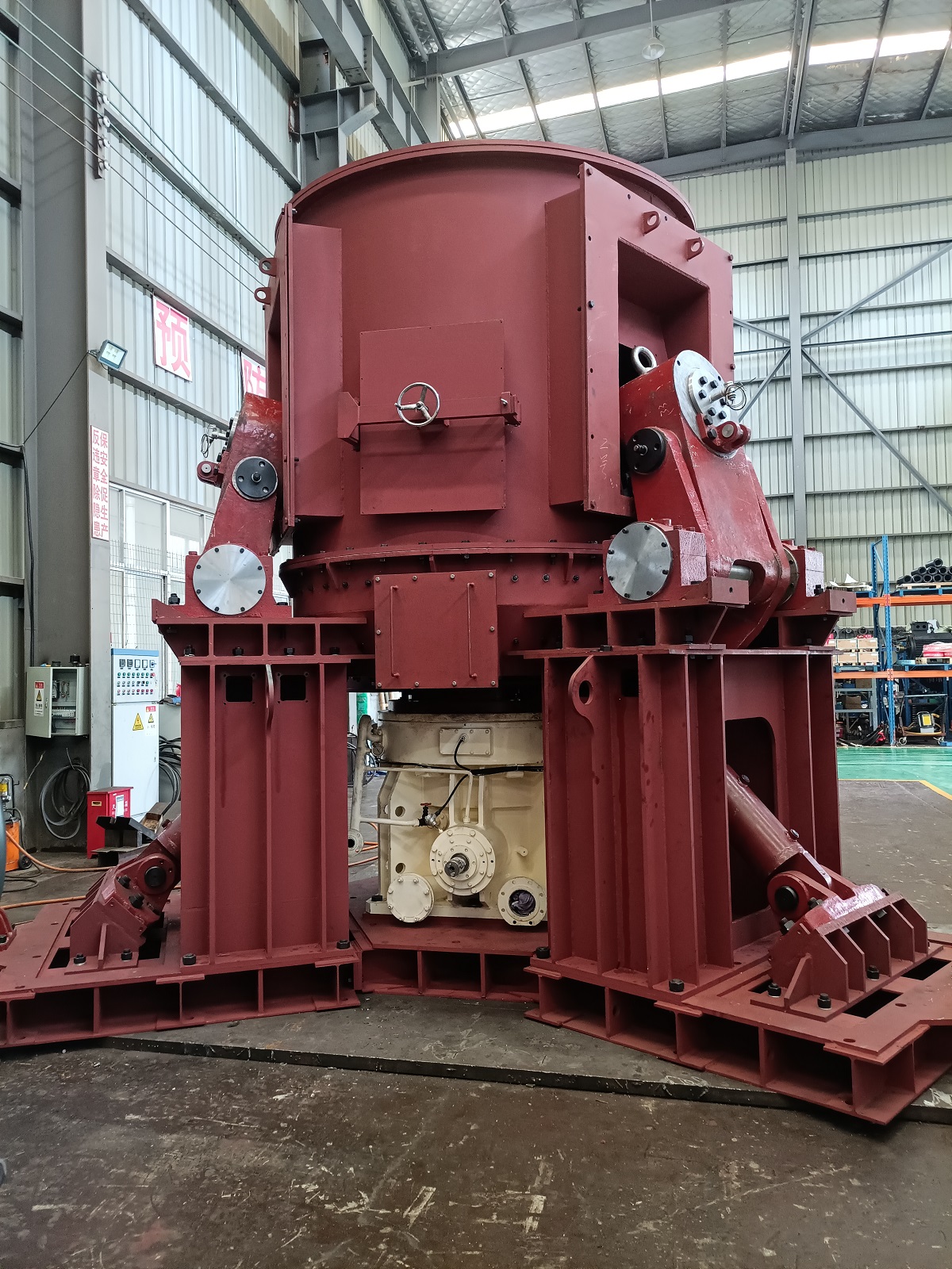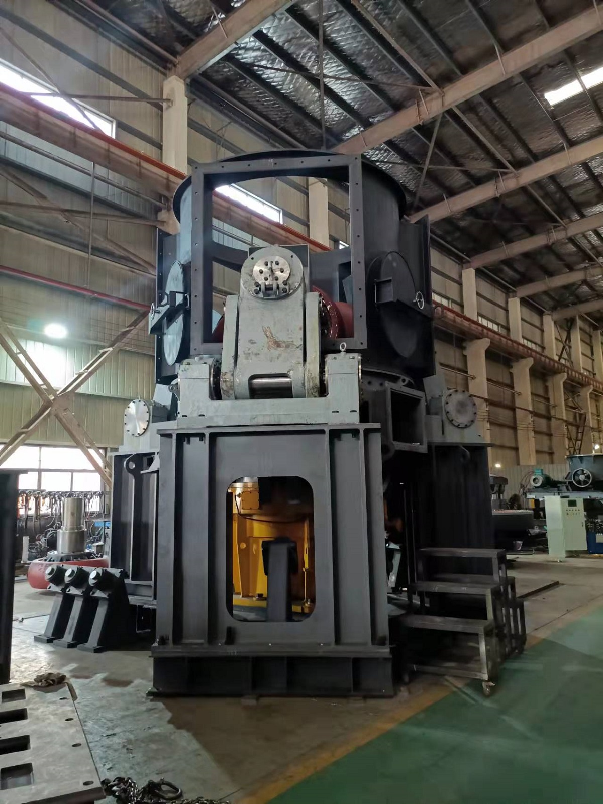 立輥采用液壓裝置翻出機(jī)外,更換輥套襯板方便,檢修空間大,工作效率高。