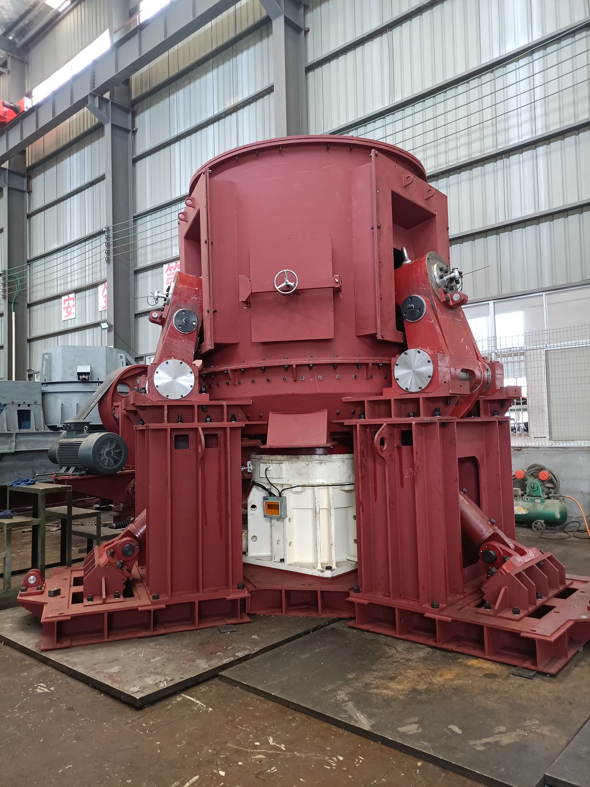 采用液壓加壓系統(tǒng),立輥壓力可根據(jù)入料粒度和入料硬度進(jìn)行調(diào)節(jié)。